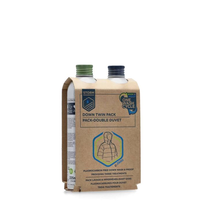 - Zestaw zawiera: Płyn do prania puchu Storm Down Wash 225 ml oraz Impregnat Storm Apparel Proofer 225 ml