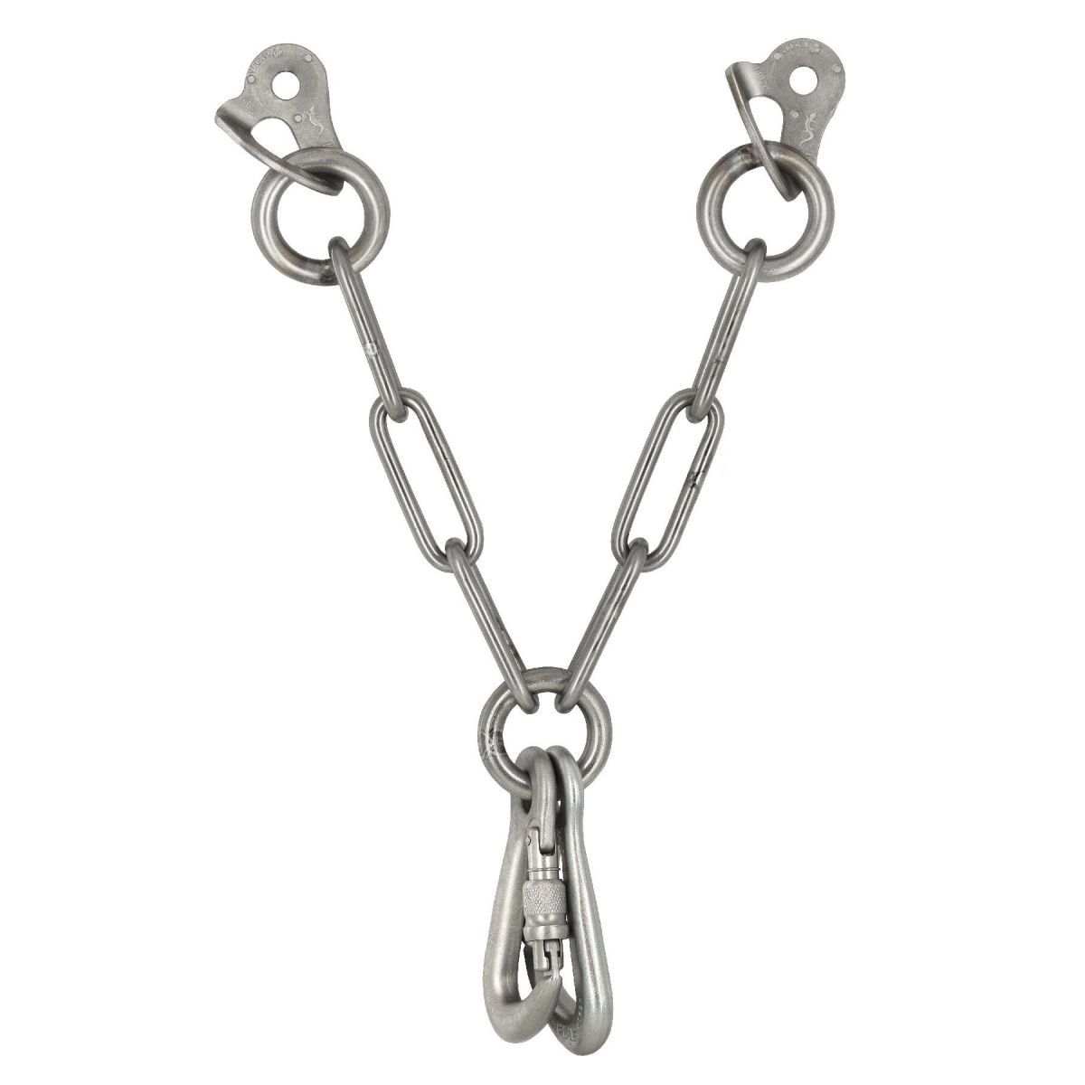 Składa się z dwóch plakietek Fixe 1 wykonanych ze stali nierdzewnej, łańcucha, ogniwa pośredniego oraz dwóch solidnych karabinków Draco z zamkiem zakręcanym, co zapewnia kompletny, gotowy do montażu zestaw stanowiskowy.