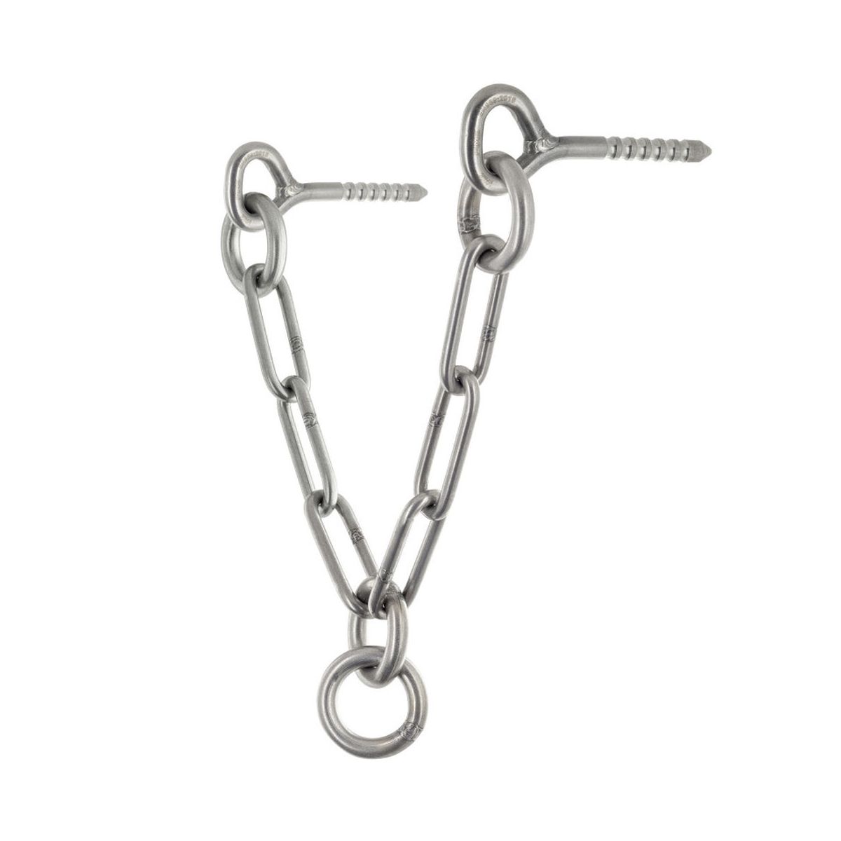 Model V50430 wyposażony jest w dwa pierścienie FIXE RING o długości 90 mm, przeznaczone do montażu na żywicę, połączone ogniwem i łańcuchem ze stali nierdzewnej 316L. Dzięki zastosowaniu dłuższych trzpieni, stanowisko oferuje głębsze zakotwienie – rekomendowane do miękkiej skały lub dużych obciążeń.