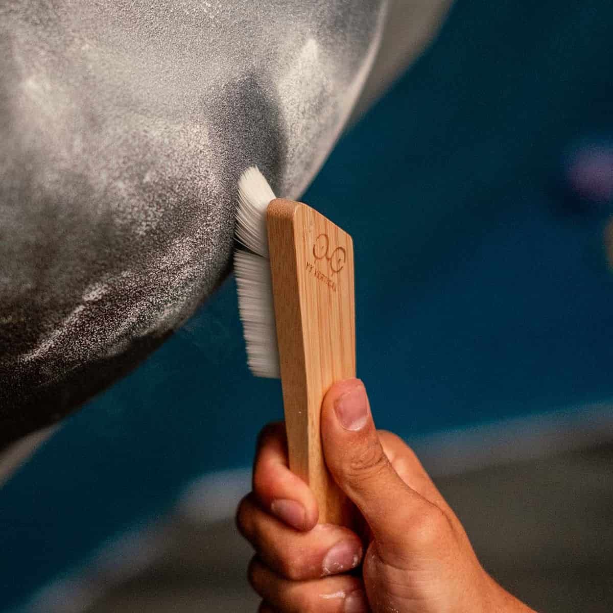 Szczotka została zaprojektowana z myślą o długowieczności. Drobne, nylonowe włosie jest trzy razy bardziej odporne niż w przypadku innych szczotek, a bambusowa struktura zapewnia dodatkową wytrzymałość. Jest trzy razy skuteczniejsza niż tradycyjna szczotka, co czyni ją groźnym przeciwnikiem dla kredy na chwytach.