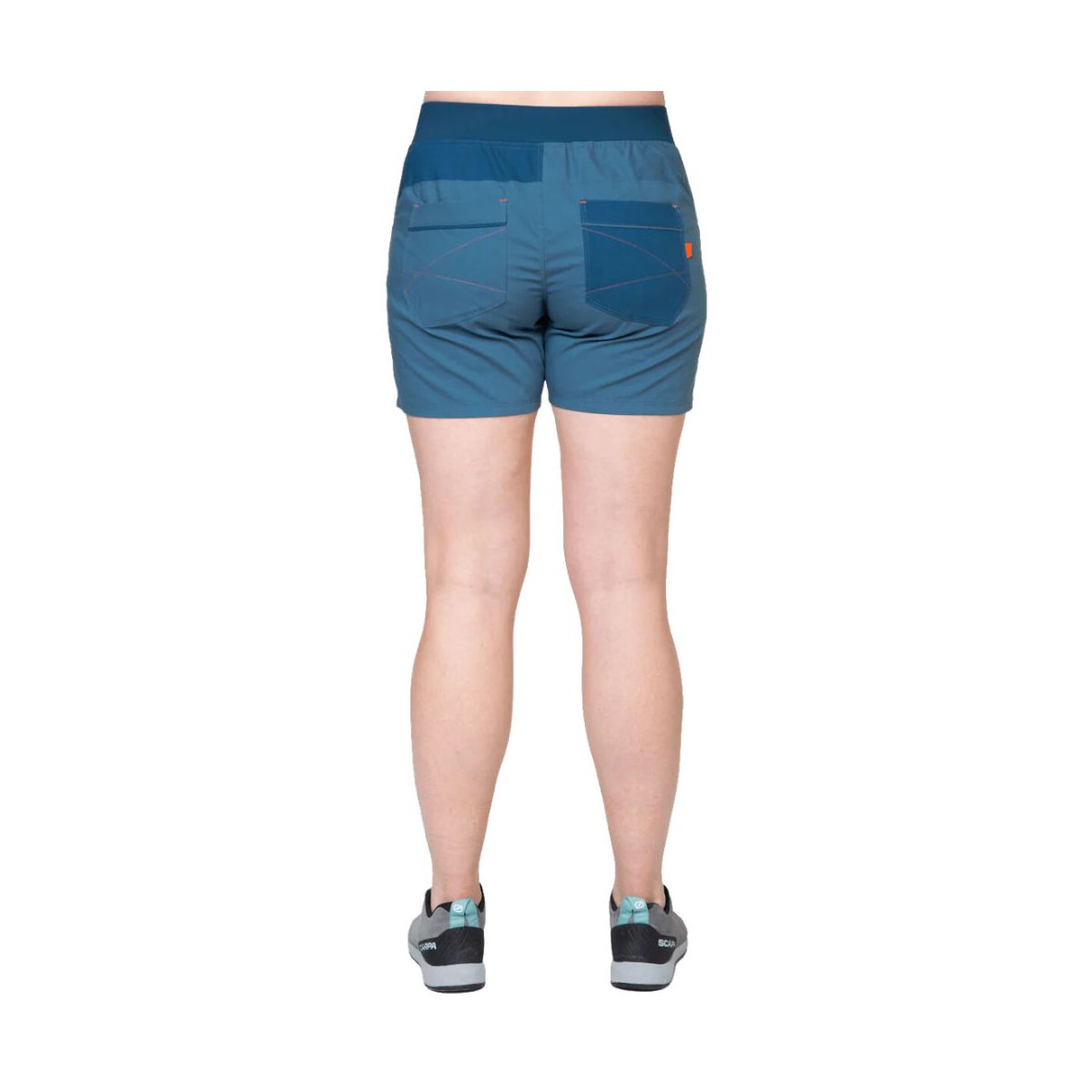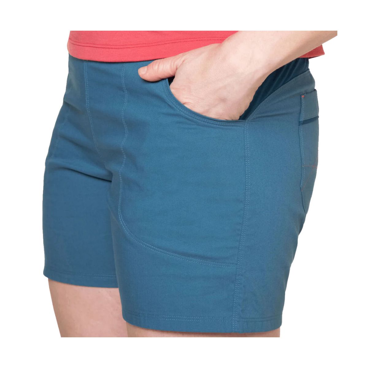 Wygodne, elastyczne, damskie szorty wspinaczkowe Mountain Equipment Anvil wykonane z mieszanki bawełny organicznej, poliamidu i elastanu.