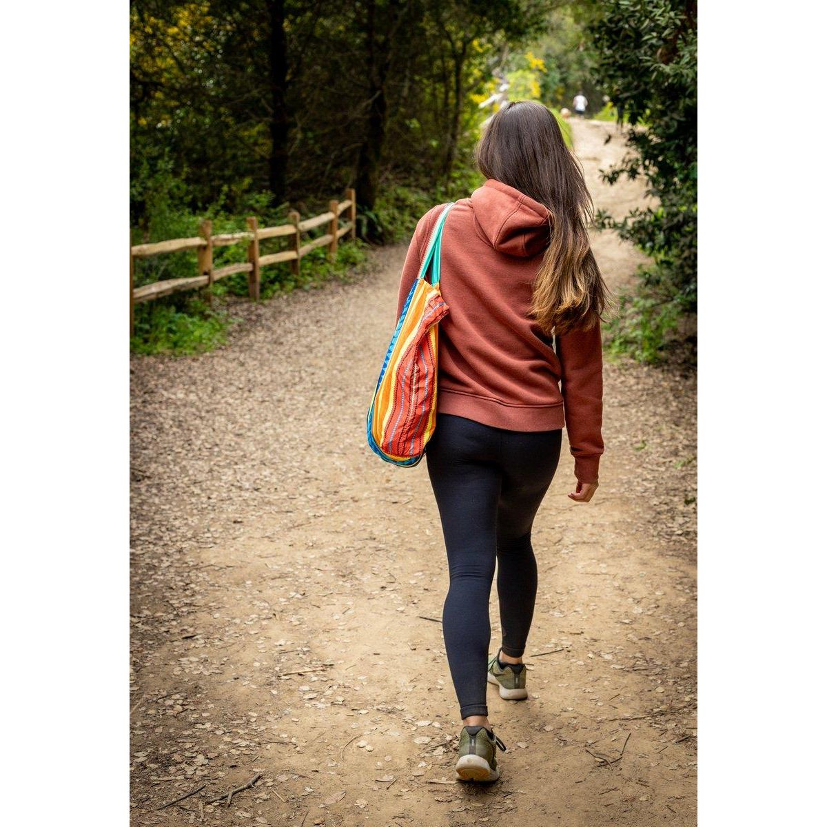 Jest trwała, pojemna, a po spakowaniu do zintegrowanego pokrowca jest wielkości piłeczki golfowej. Do szycia toreb wykorzystywany jest nylon spadochronowy z recyklingu, który pozostaje z produkcji hamaków, dlatego są podwójne dobre dla środowiska.