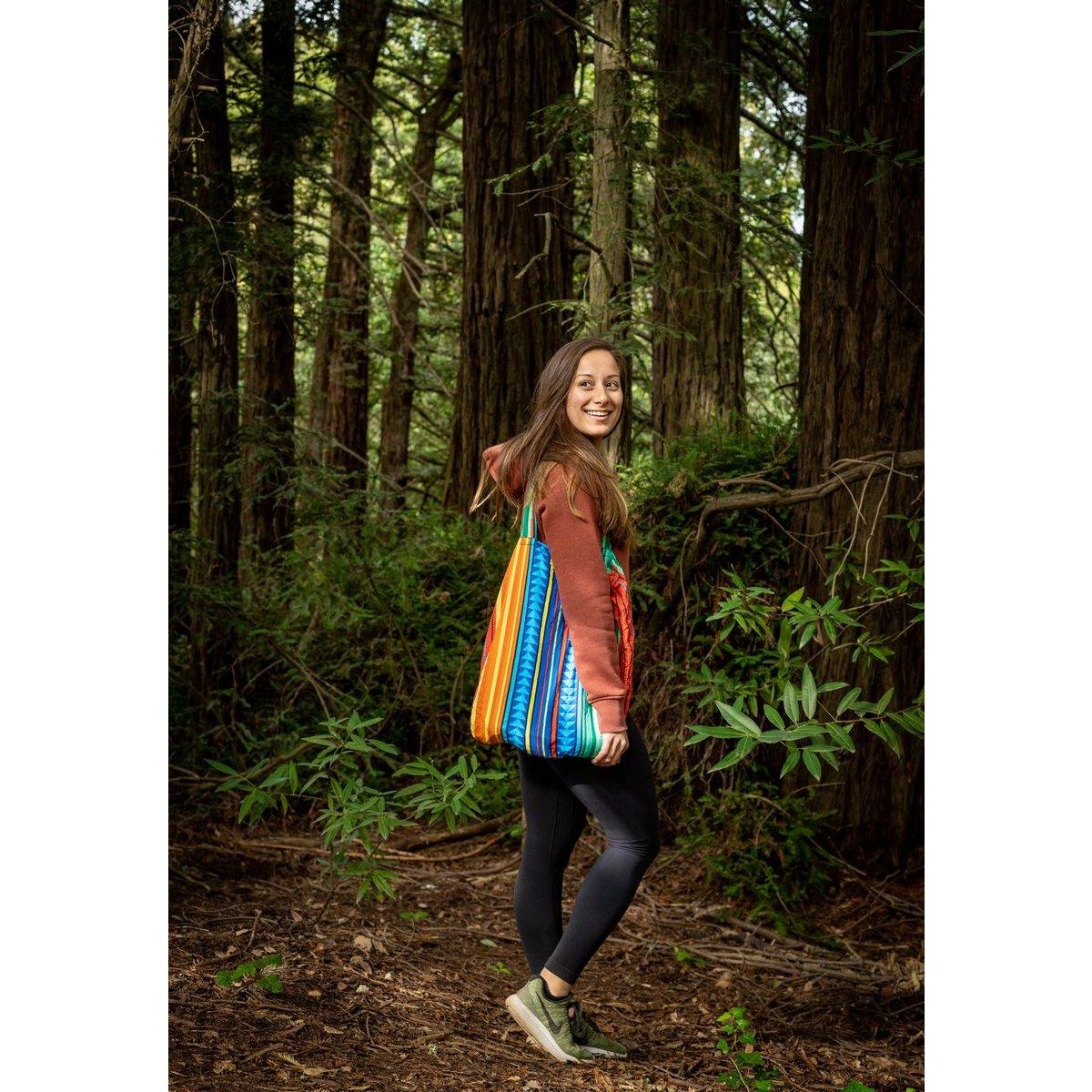 Jest trwała, pojemna, a po spakowaniu do zintegrowanego pokrowca jest wielkości piłeczki golfowej. Do szycia toreb wykorzystywany jest nylon spadochronowy z recyklingu, który pozostaje z produkcji hamaków, dlatego są podwójne dobre dla środowiska.