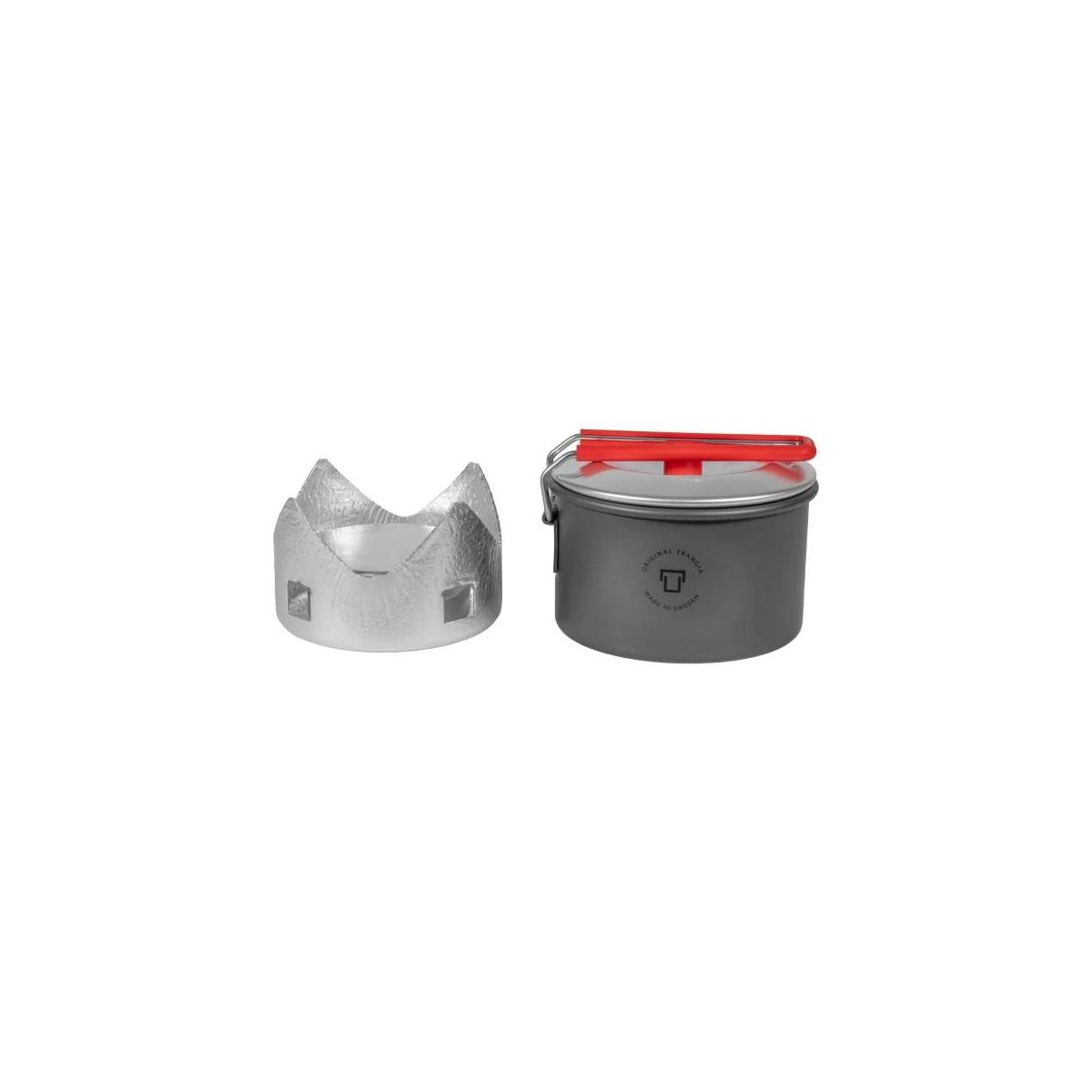 - elementy zestawu: T-Cup, pokrywka, składany uchwyt, osłona przeciwwiatrowa, palnik żelowy