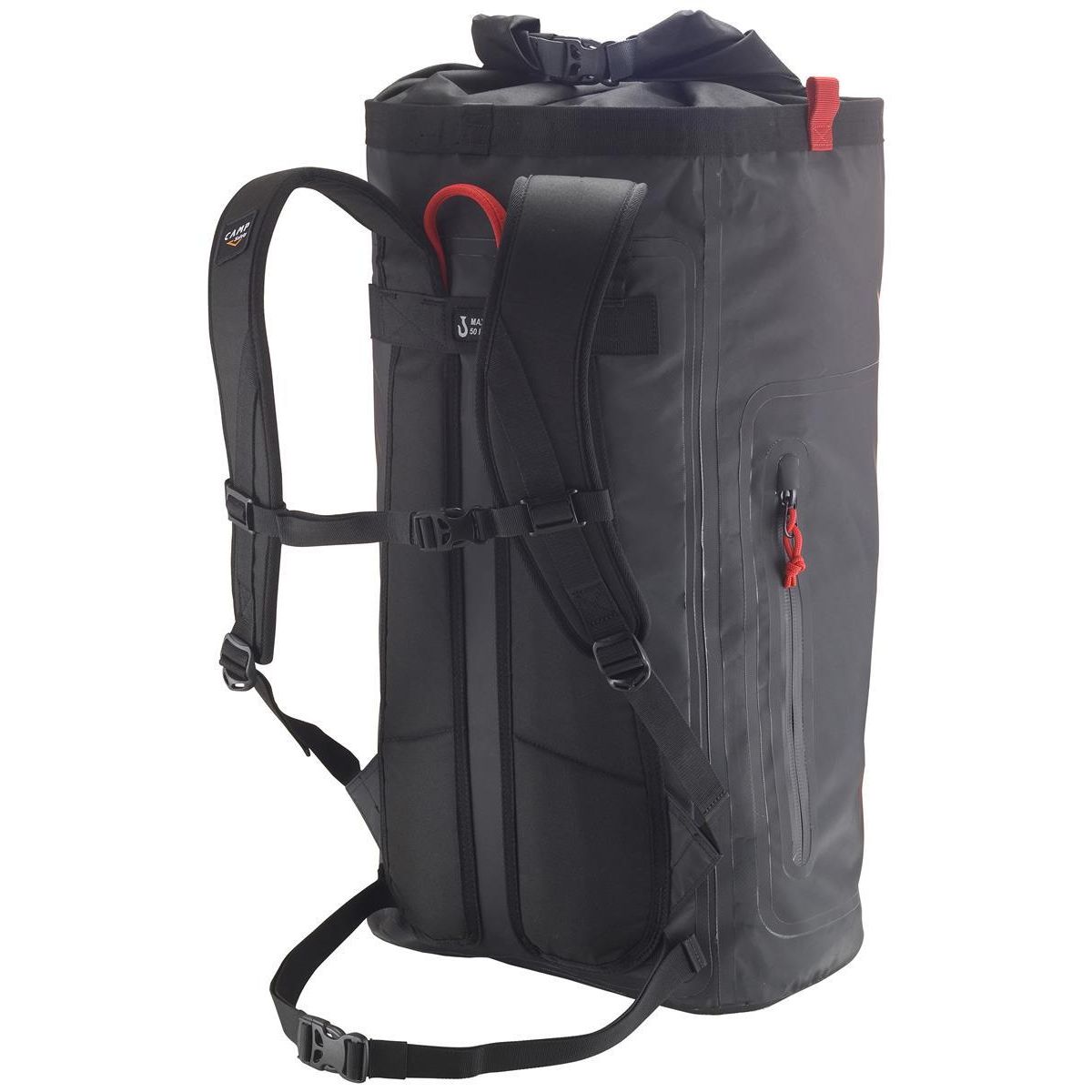 Wykonany z mocnego materiału PVC 500D zgrzewanego ultradźwiękami wysokiej częstotliwości, daje łączeniom taką samą wytrzymałość jak materiał. Rolowane zamknięcie pozwala dostosować pojemność komina. Wyściełany miękką pianką szelki i plecy oraz pas piersiowy i biodrowy zwiększają komfort noszenia. Wszyte dodatkowe pętle pozwalają na podczepienie worka do liny bądź konstrukcji. Pętle i rączka wytrzymają obciążenie 50 kg.