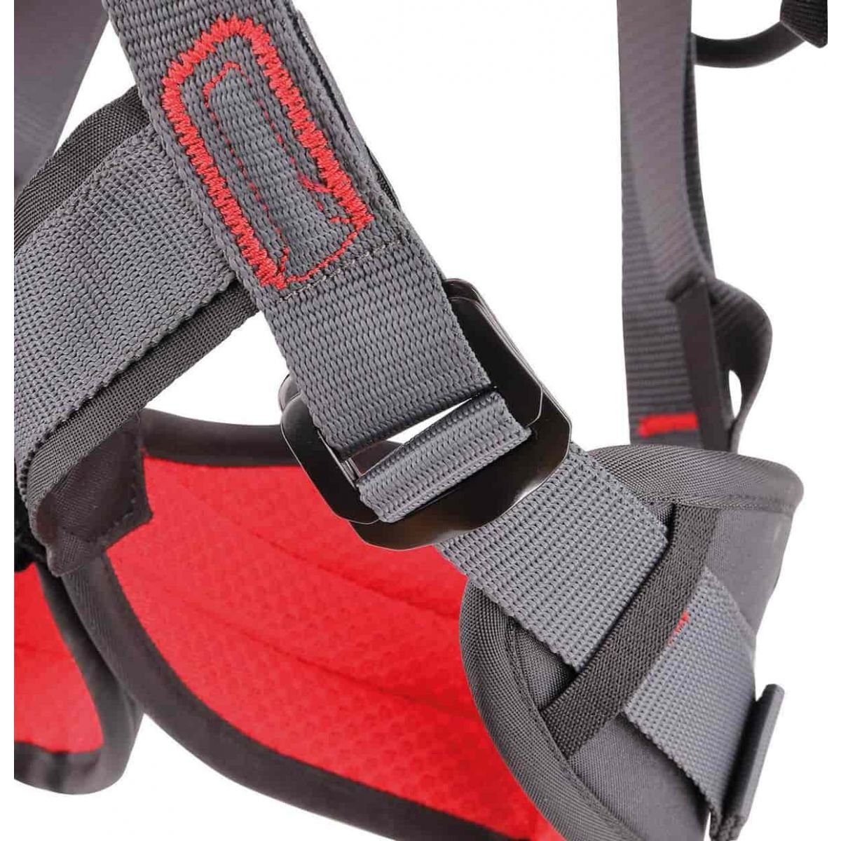 Innowacyjne połączenie między pasem biodrowym, a pasami udowymi zapewnia wygodę zarówno podczas wiszenia, jak i pracy na ziemi. Pętle udowe są sztywniejsze z tyłu dla wsparcia obciążenia, a bardziej miękkie w okolicy pachwiny dla wygody. Duża powierzchnia styku pozwala na równomierne rozłożenia nacisku. Wygodna siatka 3D od wewnątrz na pętlach udowych i w pasie zapewnia komfort uzytkowania.