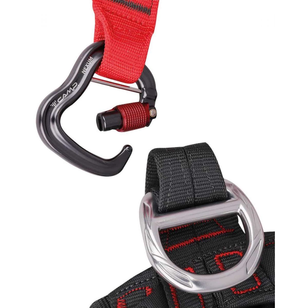 - wyposażona w kompaktowy, automatycznie blokowany karabinek Nexum 3Lock do łączenia części uprzęży siedzącej i piersiowej