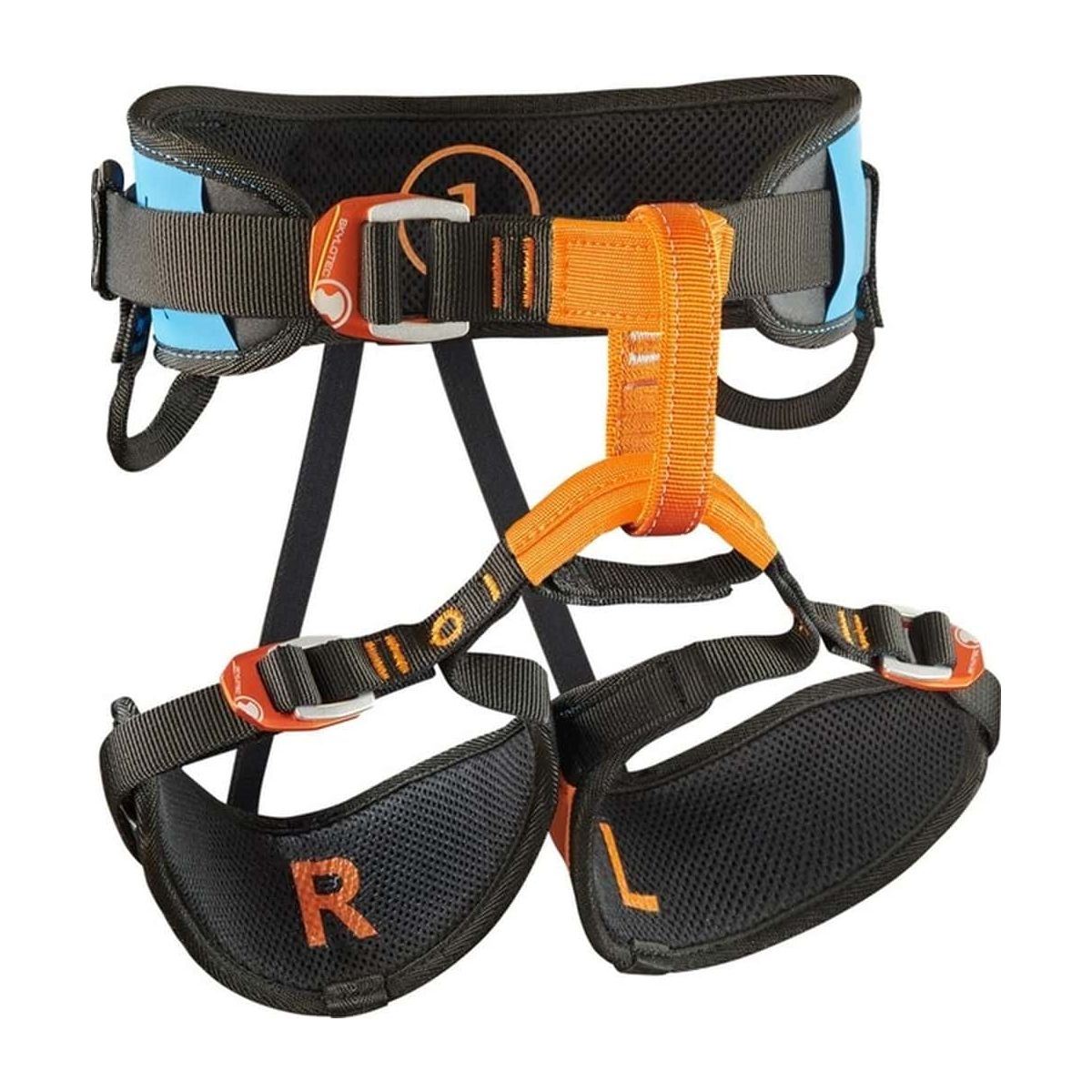 - Kodowanie kolorystyczne: Każdy rozmiar pasa biodrowego ma inny kolor, a pętle udowe są również w kontrastowych barwach, co ułatwia szybki wybór i dopasowanie uprzęży do użytkownika.