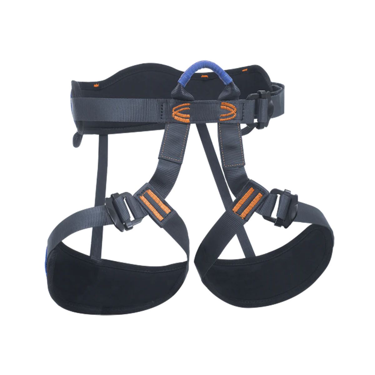 Miękka pianka w pasie biodrowym i na udach zapewnia komfort noszenia, a usztywnione pętle udowe ułatwiają szybkie zakładanie i zachowują kształt. Uprząż posiada pojedynczy punkt wpinania (brzuszny), co upraszcza użytkowanie i minimalizuje ryzyko błędów.