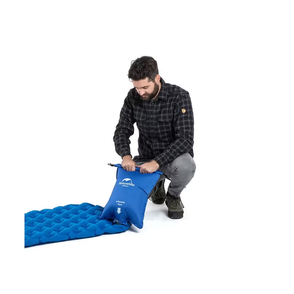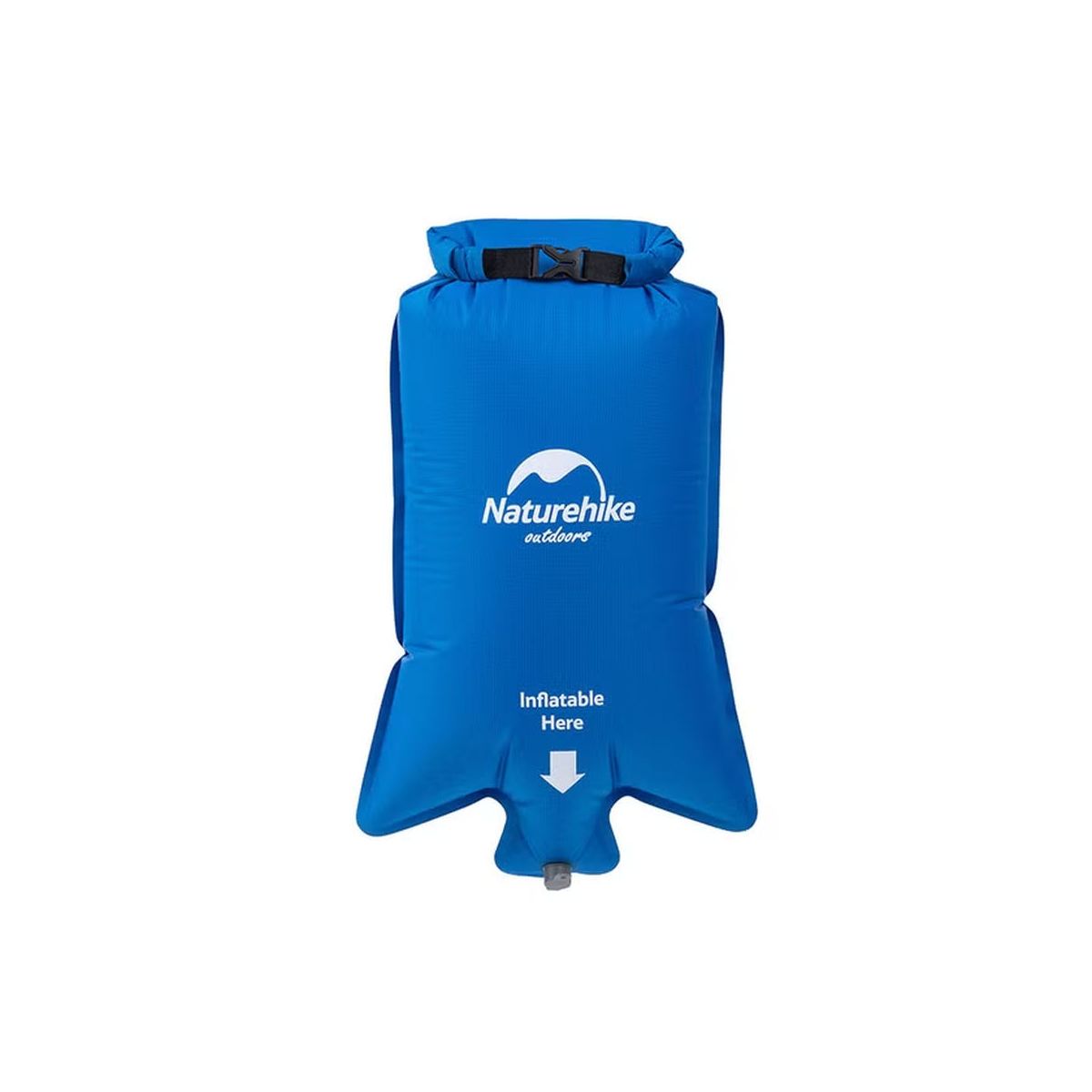 Wystarczy rozwinąć worek, napełnić go powietrzem i ścisnąć – powietrze zostaje wtłoczone do materaca przez specjalne złącze kompatybilne z większością modeli Naturehike (z wyjątkiem serii Tuye). Po zakończeniu biwaku worek może pełnić funkcję wodoszczelnego worka transportowego – do przewożenia ubrań, elektroniki lub innego sprzętu wymagającego ochrony przed wodą.