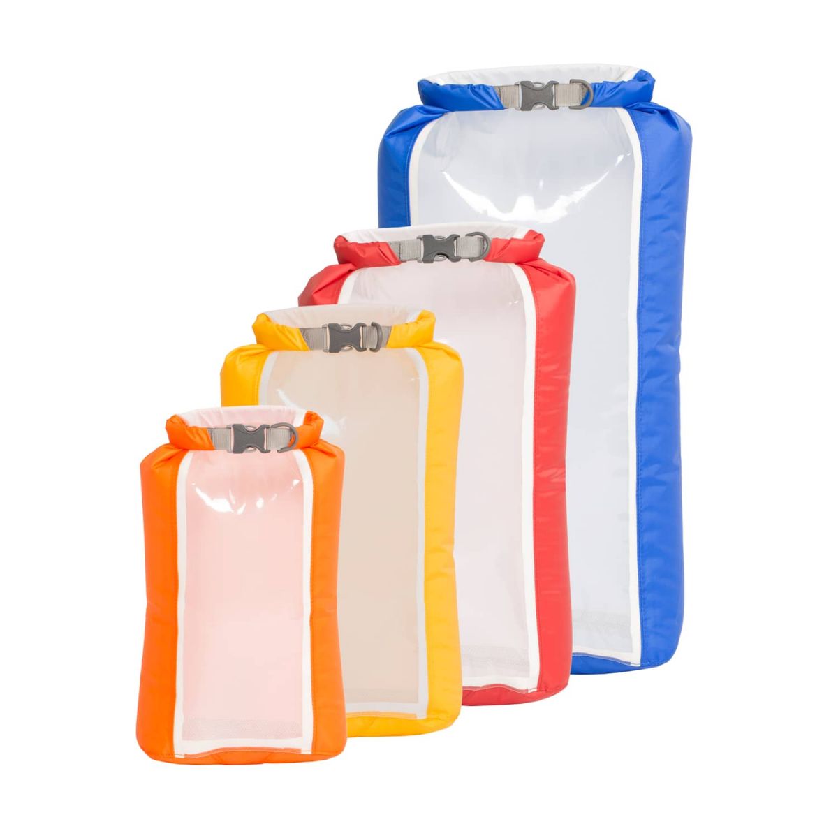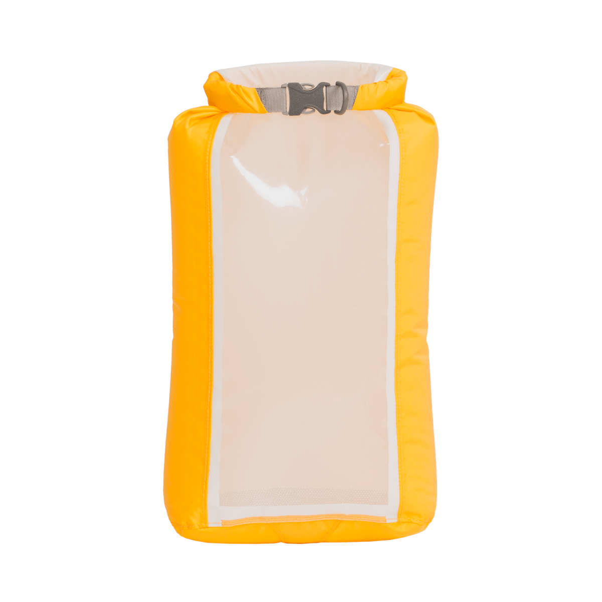 Klasyczne, wodoodporne worki transportowe Exped Fold DryBag CS z z przezroczystym panelem i systemem zamykania typu roll-top.