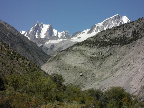 fot. Piotr Picheta - od lewej: Koti Chok i Kuti Pokush. Szczyty widoczne z trekkingu do obozu bazowego