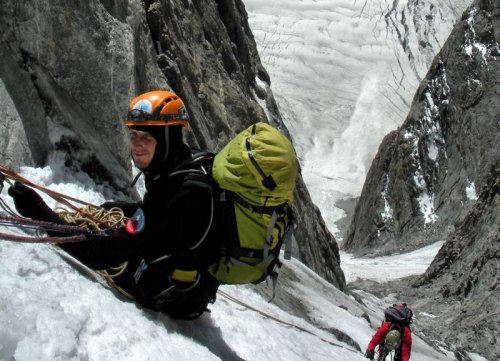 fot. Maciek Chmielecki - na stanowisku podczas wspinaczki na Koti Chok. Na zdjęciu Piotr i poniżej Kuba