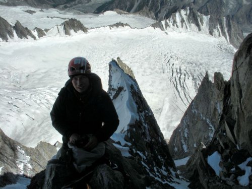 Koło godziny 14, Maciek i Mikołaj osiągnęli wreszcie przełączkę. Po założeniu stanowiska zaczęli gotować herbatę, zachęcając nas tym samym, do podwojenia wysiłków. A my wcale nie wspinaliśmy się szybciej. W końcu byliśmy na wysokości 5800 metrów i mieliśmy już za sobą jakieś 1000 metrów wspinania.