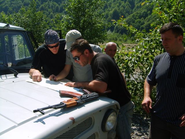 Tuż po przybyciu do małej miejscowości Lentekhi w Dolnej Swanecji, zostaliśmy gorąco przywitani przez grupę groźnie wyglądających osiłków, która niemalże siłą wyciągnęła nas z zapakowanej po brzegi marszrutki. Mocno zaniepokojeni wypakowywaliśmy plecaki. Gdy ostatecznie przekroczyliśmy próg autobusu instynkt samozachowawczy rozpoczął swoją mroczną grę. Czarne scenariusze, niczym klatki filmowe puszczone w zwolnionym tempie przenikały do kości. Trudno się dziwić. Czterech turystów ląduje w obcej krainie, która przez większość świata uważana jest za region niebezpieczny. Jak się później okazało, byli to lokalni policjanci, którzy za punkt honoru postawili sobie opiekę nad gośćmi. Bez wątpienia nimi byliśmy. Sakartvelos Gaumardżos. Wieczór przy hektolitrach wina, żywe toasty i niesamowita otwartość tych ludzi, sprawiła że wszystkie nasze obawy stały się niczym poranna mgła, rozpływająca się w promieniach słońca. Gość dla Gruzina to świętość. Musi czuć się bezpiecznie i nie może odejść głodny. To wspaniała cecha tego narodu.