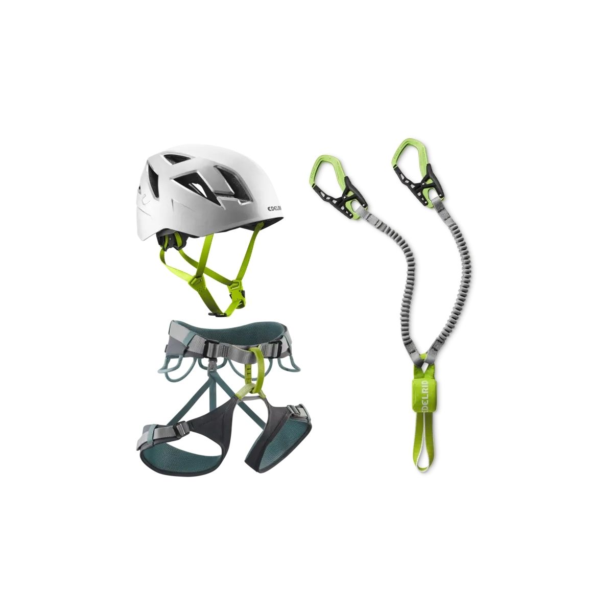 SKYE KIT to niezwykle wygodny zestaw do via ferraty składający się z uprzęży wspinaczkowej, lonży i kasku. Obejmuje on wszechstronną uprząż wspinaczkową SKYE z czterema klamrami o szerokim zakresie regulacji, która optymalnie rozkłada obciążenie dzięki kształtowi motyla. Wypróbowany i przetestowany, kompaktowy zestaw do via ferraty CABLE KIT z odpornymi na zużycie, elastycznymi gałęziami jest odporny na zwarcie dzięki innowacyjnej konstrukcji i jest wyzwalany w przypadku upadku, nawet jeśli zostanie niewłaściwie użyty o 180 °. Lekki i dobrze wentylowany kask hybrydowy ZODIAC chroni głowę.