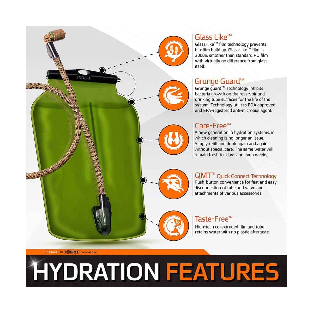 Wszystkie systemy nawadniające Source są łatwe w utrzymaniu i pielęgnacji dzięki unikalnej technologii GlassLike™ i GrungeGuard™. Woda przechowywana w bukłaku smakuje jak woda i pozostaje świeża przez wiele dni, a nawet tygodni - bez smaku plastiku dzięki technologii TasteFree™!