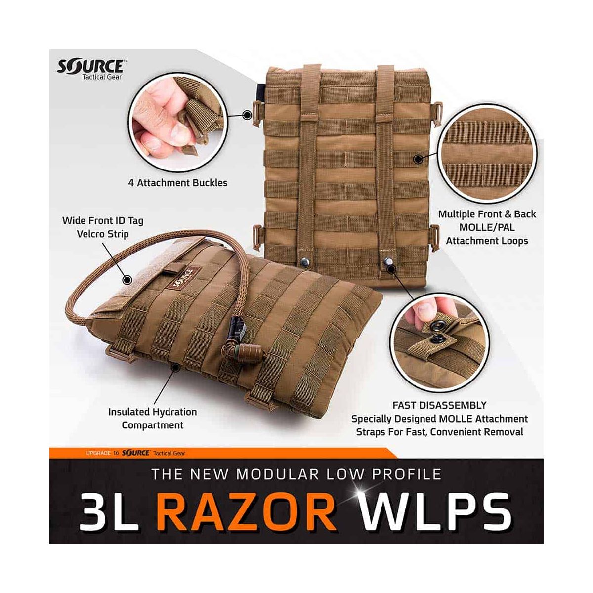 Niskoprofilowy system hydracyjny Source Tactical Gear Razor 3l (kolor MULTICAM) zaprojektowany specjalnie do integracji z kamizelkami balistycznymi opartymi na systemie Molle.