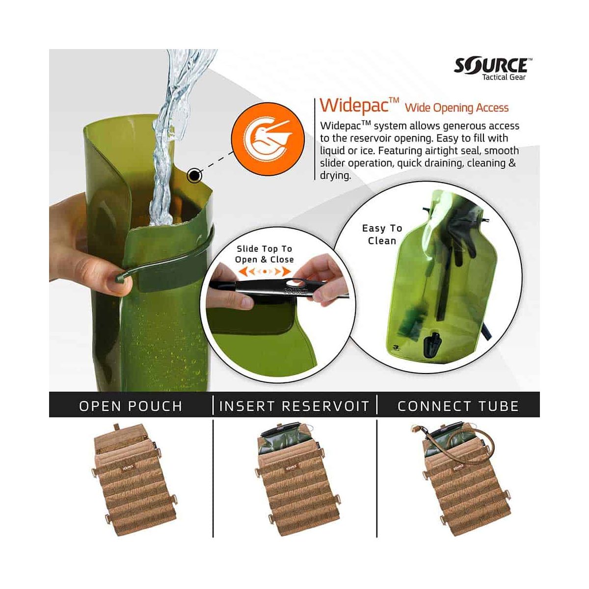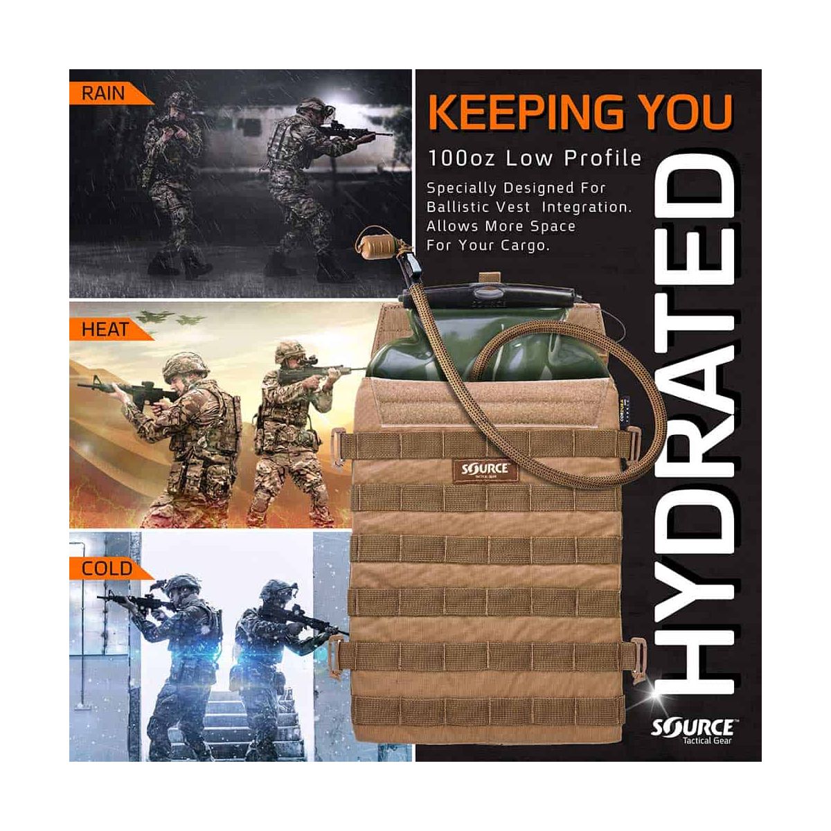 Doskonały do misji taktycznych, wędrówek na świeżym powietrzu lub przygód na kempingu, ten system nawadniający z systemem Molle można przymocować jako przedłużenie dowolnej kamizelki taktycznej lub plecaka taktycznego.