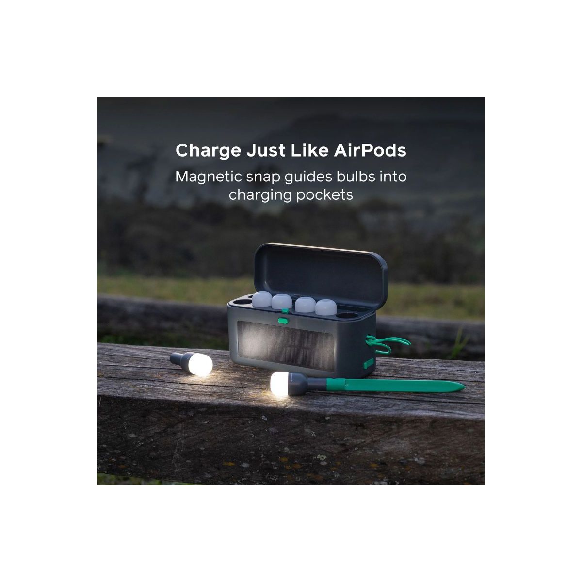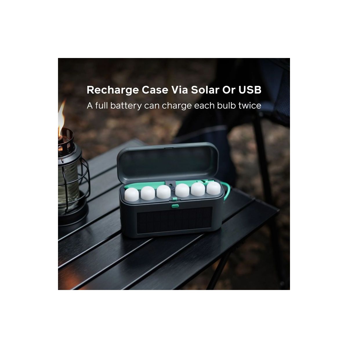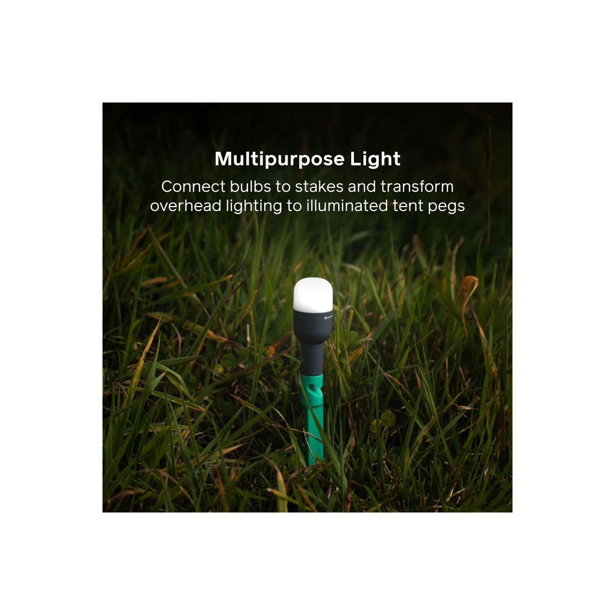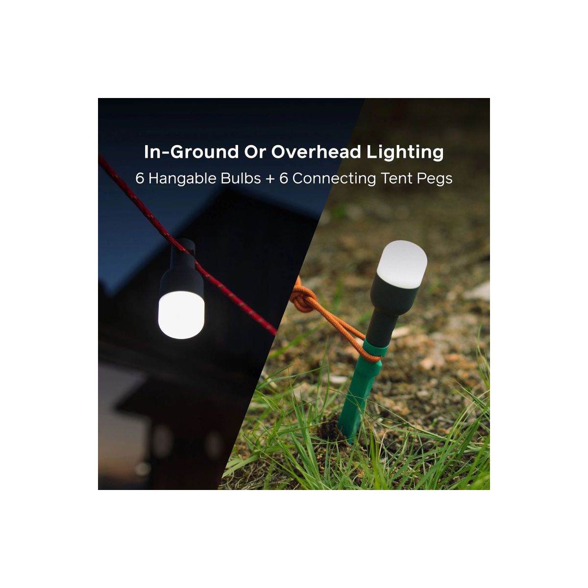 BIOLITE SITE LIGHTS to wielofunkcyjny zestaw oświetleniowy, który sprawdzi się zarówno jako lampki wiszące, jak i stawiane w ziemi. W zestawie znajduje się 6 lamp LED, 6 wytrzymałych kołków do wbijania oraz ładowalne etui (power bank) z panelem solarnym i portem USB‑C. Każda z lamp może pracować do 20 godzin na jednym ładowaniu, a etui umożliwia ładowanie ich nawet dwa razy. Idealny do oświetlenia campsite’a, ogrodu lub wejścia do namiotu.
