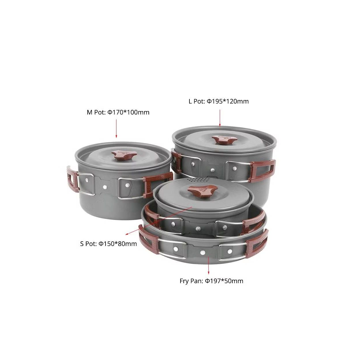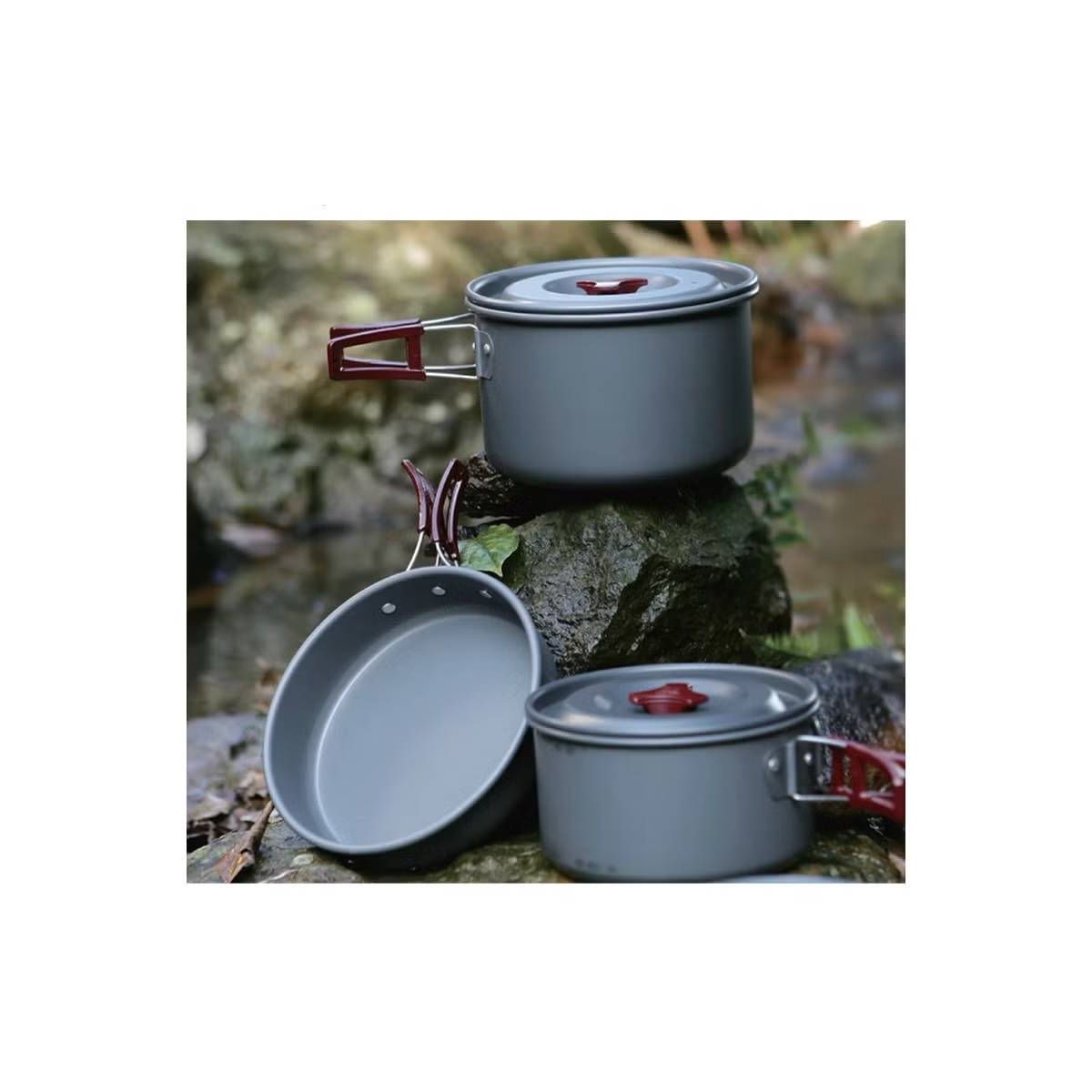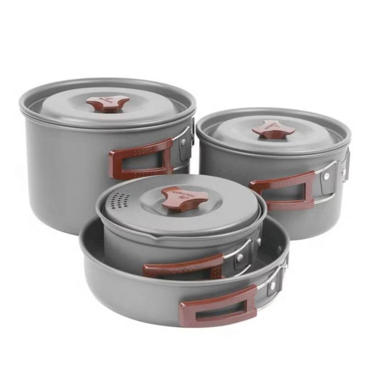 Zestaw naczyń Fire Maple FMC-206 został zaprojektowany z myślą o większych grupach (pozwala wygodnie gotować dla 4-5 osób). W skład kompletu wchodzi kompaktowa patelnia, trzy garnki w różnych rozmiarach wyposażone w dopasowane pokrywki, pięć praktycznych misek, dwa talerze oraz niezbędna gąbka do mycia naczyń.