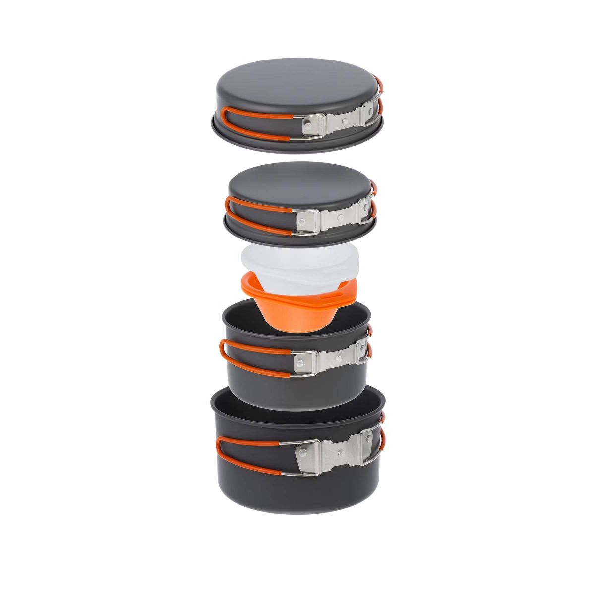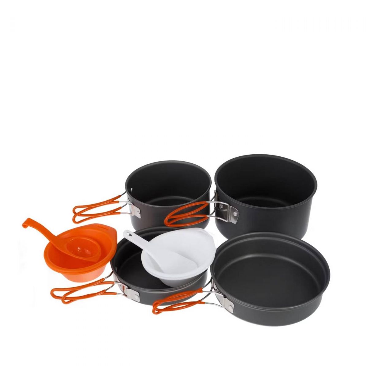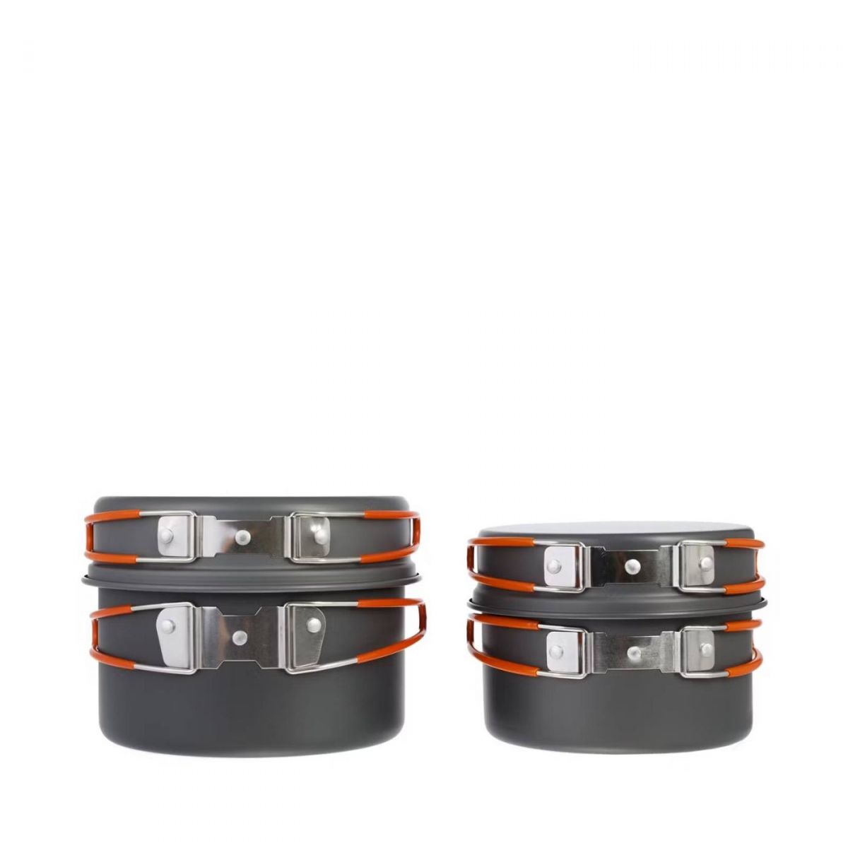 FMC-K7 to praktyczny zestaw naczyń turystycznych, który sprawdzi się w każdej biwakowej kuchni. W skład zestawu wchodzą dwa garnki i dwie patelnie, które pozwolą na przygotowanie ciepłych posiłków dla grupy od 3 do 5 osób. Naczynia zostały wykonane z lekkiego i wytrzymałego aluminium anodyzowanego. Materiał ten cechuje się wysoką odpornością na działanie temperatury oraz uszkodzenia mechaniczne, co czyni go idealnym wyborem na każde warunki terenowe.