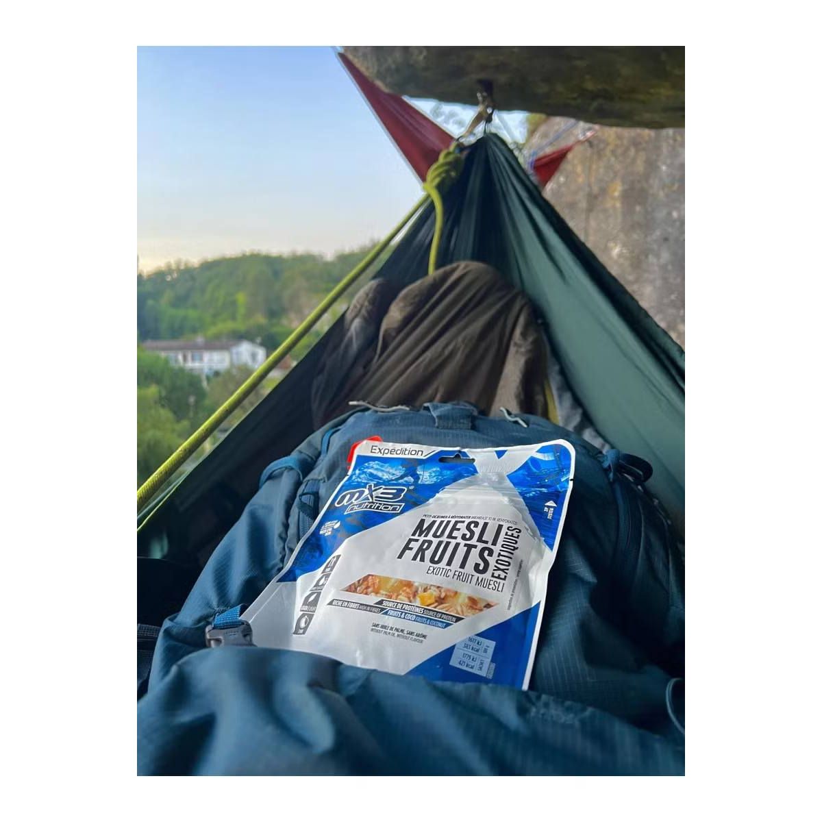 W daniu śniadaniowym MX3 znajduje się dużo białka i błonnika. Jest także zbilansowanym źródłem energii opartej na zdrowych produktach. Liofilizowana postać potrawy sprawia, że jest lekka i ma niewielkie rozmiary więc można jąłatwo zmieścić w plecaku. Do przygotowania musli wystarczy tylko łyżka i woda ciepła albo zimna, a jej nawadnianie trwa tylko 3 minuty. Szybko, smacznie i zdrowo, a do tego z energią do nowych wyzwań - oto najkrótszy opis musli z owocami tropikalnymi MX3.